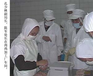 8月21日下午,省农业开发局副局长孔少林、省财政厅 项目处处长陈军到正阳关农场就农业产业化情况进行调 研,总公司发展计划处处长冯贵良陪同调研。他们深入 肉鸡加工厂车间、肉鸡八场鸡舍了解生产经营情况。在 场部三楼会议室进行了座谈,场长、党委书记杨俊宇详 细汇报了我场肉鸡产业化发展现状及“十五”规划情 况。陈处长是第三次来正阳关农场,他觉得每次都有大 变化,每次都有大发展。孔副局长谈了六点感受,一、 正阳关农场主导产业明晰,围绕肉鸡做文章,形成完整 的产业链,而且规模比较大,看到产业化的气势,这些 在县域经济中是看不到的。二、发展思路明晰,以市场 为导向组织生产,肉鸡产品向熟食方向发展,具有市场 前瞻性。三、管理科学规范,通过ISO9002质量体系认 证,在车间看到的工资日清栏,进车间一整套的消毒程 序可以看出管理水平非同一般。四、农场重视人才,重 视培训,海尔学习、电脑培训等提高员工素质的做法很 有战略眼光。为肉鸡产业的发展积蓄了大量人才,这是 企业发展关键。五、品牌意识强,挂牌上岗,企业形象 建设等抓得有力。六、领导班子精神状态好,感受到领 导气魄和对企业未来的信心。最后孔副局长建议,要抓 住这次世行贷款机遇,项目建议书已做好,要进一步做 好论证等工作。场领导方金涛、樊皓、项武华陪同调 研。(霍圣宏)