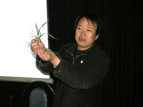 为提高农场职工科学种田水平,潘村湖农场于2月23日至24日举办了为期2天的农业技术培训班。应邀专程前来农场的安徽农业大学、明光市植保站、明光市三界镇甜叶菊协会等单位的农技专家结合当前农时农事就小麦高产栽培技术、小麦病虫害防治以及甜叶菊栽种技术等农技知识作了深入浅出的讲解。全场基层农技员和职工代表等100多人参加了本次培训活动。图为安徽农业大学教授黄正来正在讲授小麦高产栽培技术的情景。(杨登宏)